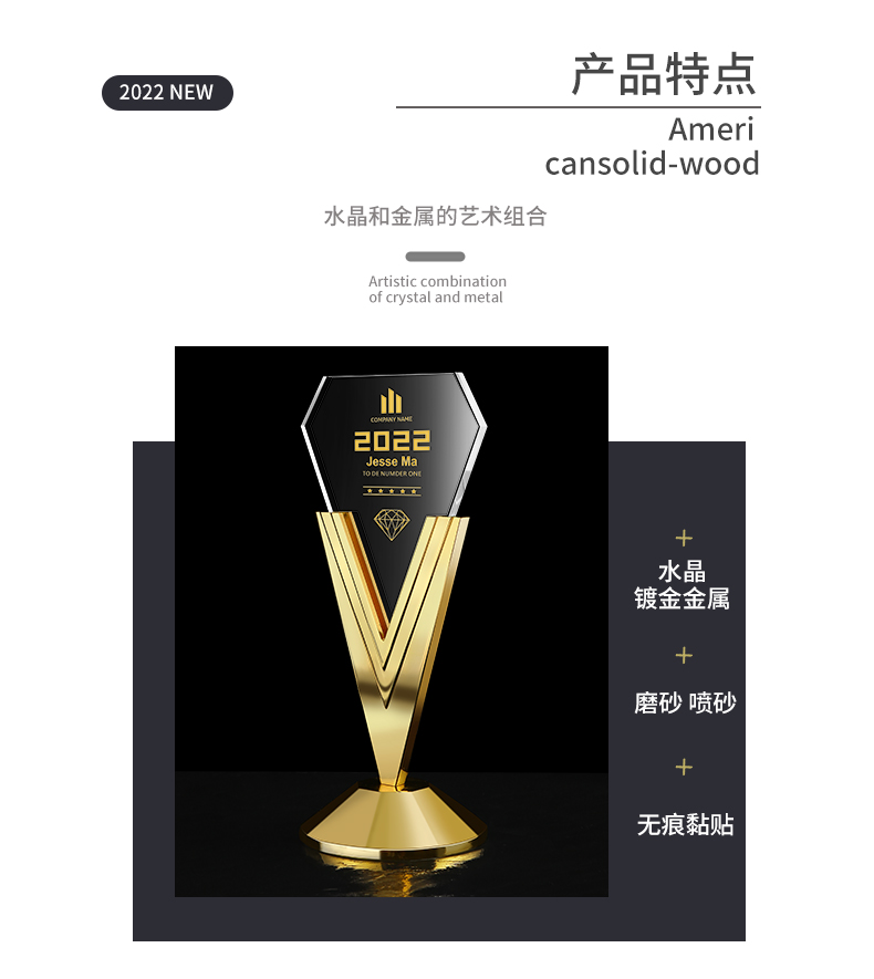 新款金属水晶奖杯