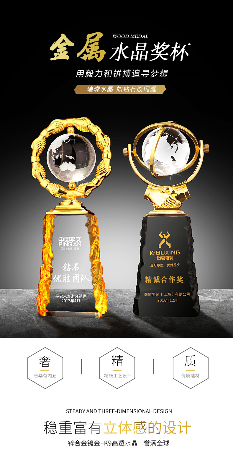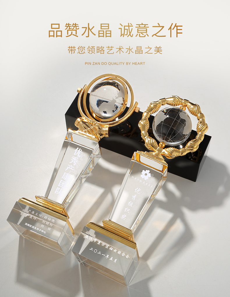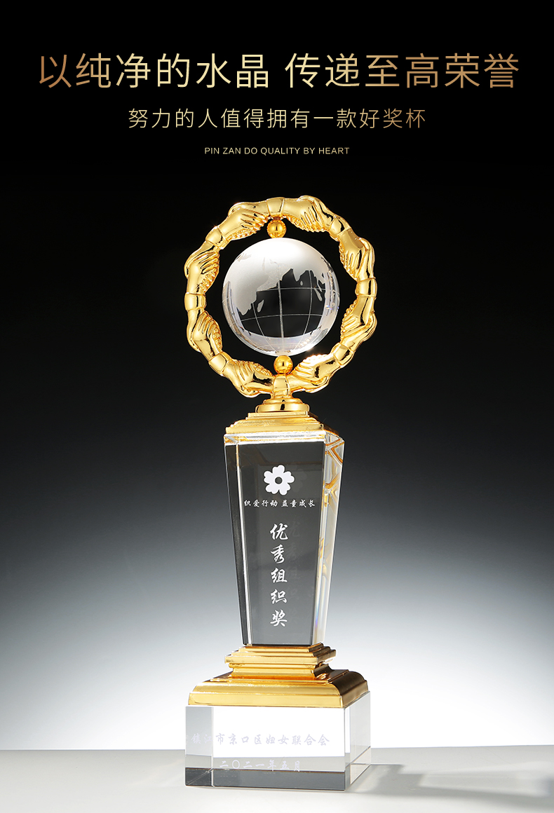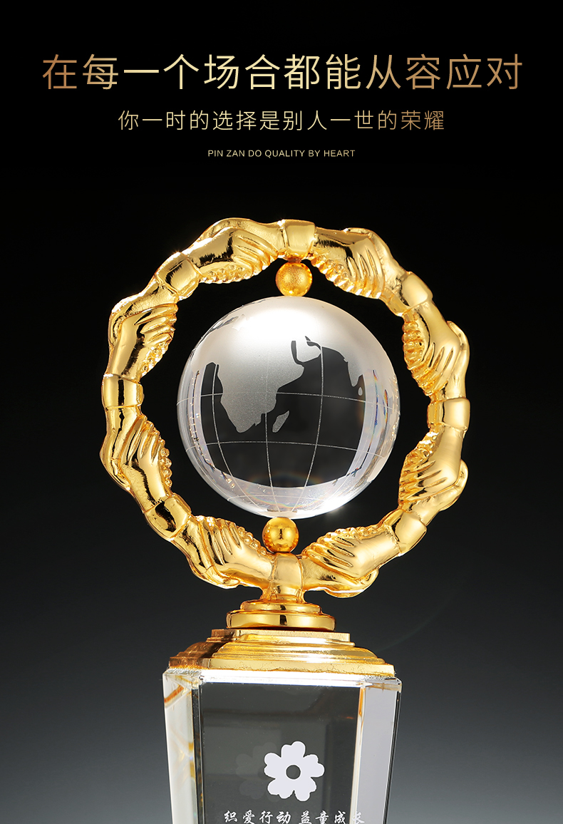 1004 / 【掌上世界】创意金属奖杯定制供应商水晶地球仪颁奖活动纪念品团队合作共赢