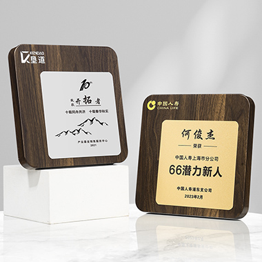 524 / 成都高档仿胡桃木奖牌定制定做企业公司品牌授权牌优秀…