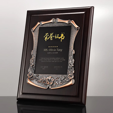 543 / 成都金属花框奖牌高档牌匾仿胡桃木花框奖牌木托牌制作…